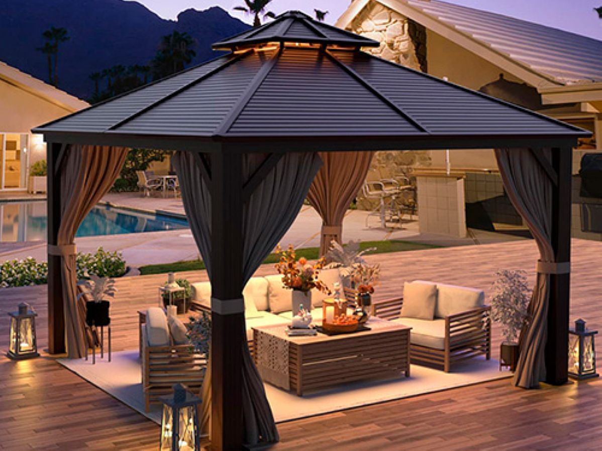 Muchos kits incluyen complementos que pueden usarse para mejorar la usabilidad y comodidad del pabellón, como mamparas, cortinas, luces y ventiladores. Como resultado, los usuarios pueden diseñar una zona de estar exterior especial que se ajuste a sus necesidades y gustos.