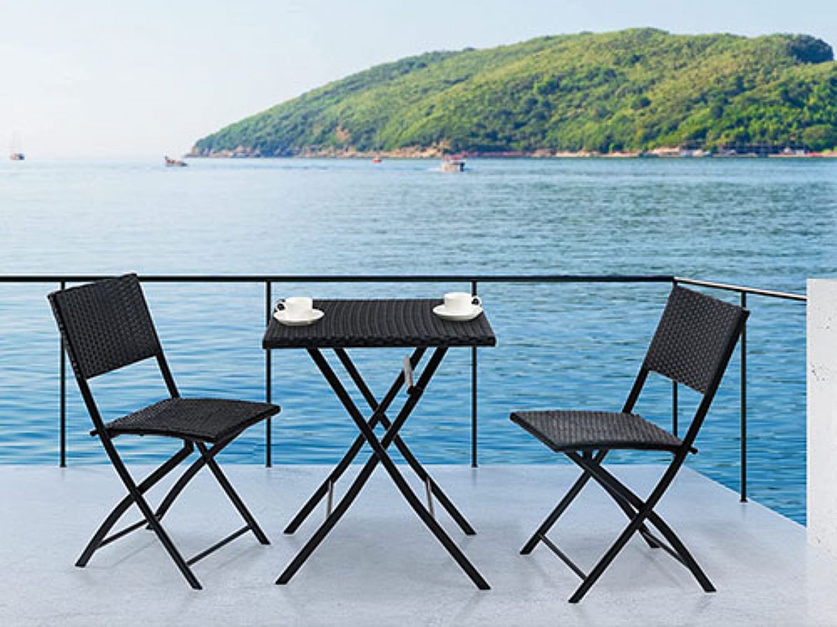 Si el espacio es limitado, busque un bistró plegable. Las mesas y sillas plegables son flexibles y convenientes y se pueden plegar fácilmente. No es necesario instalarlos y su fácil plegado puede ahorrarle una cantidad significativa de espacio. Puedes plegarlos o desplegarlos cuando y donde quieras, ocupando poco espacio y satisfaciendo tus necesidades.