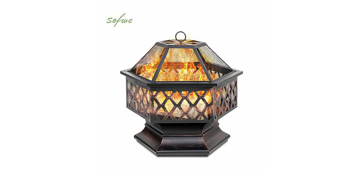 - La construcción de metal resistente de esta hoguera con tapa de malla le permite quemar madera de manera segura sin preocuparse de que las llamas se salgan de control. Este brasero tiene un recipiente hexagonal de 24 pulgadas que acomoda fácilmente troncos de todos los tamaños para crear una hermosa atmósfera al aire libre a un precio asequible.