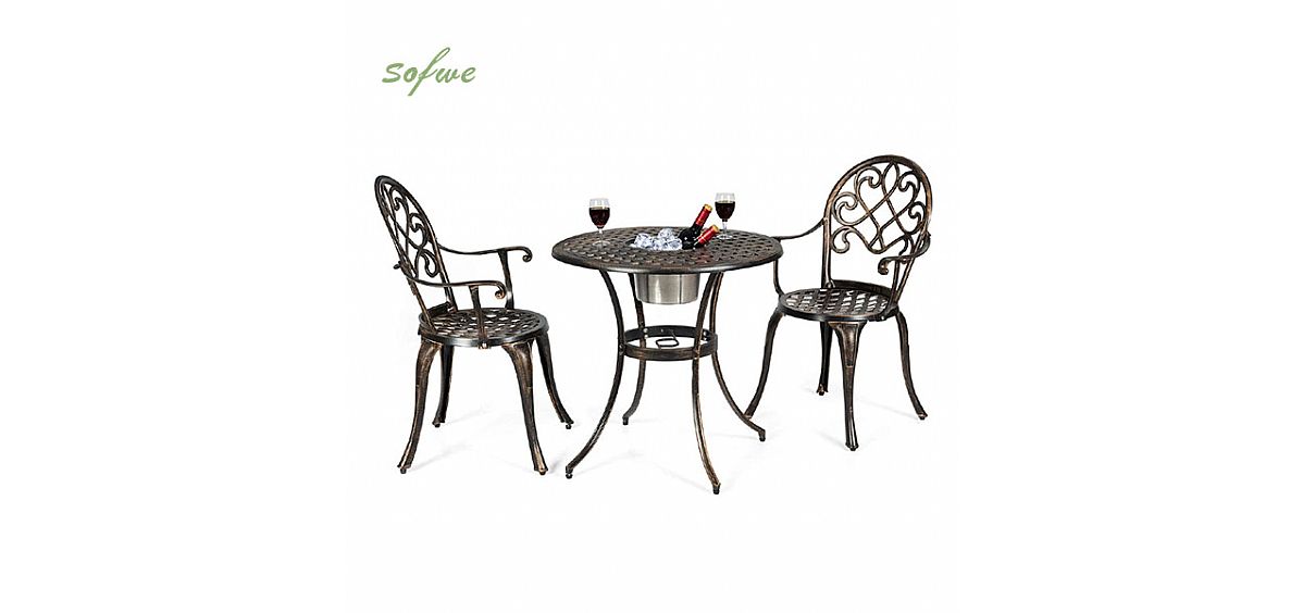 - Marco de aluminio fundido resistente a la intemperie: Este juego de bistró de tres piezas es de aluminio fundido resistente a la intemperie, lo que lo hace lo suficientemente robusto como para servirle durante mucho tiempo. Este juego de patio no se oxida y es resistente a la intemperie, lo que lo hace adecuado para un uso exterior sin preocupaciones. Un marco robusto garantiza una fuerte capacidad de carga.