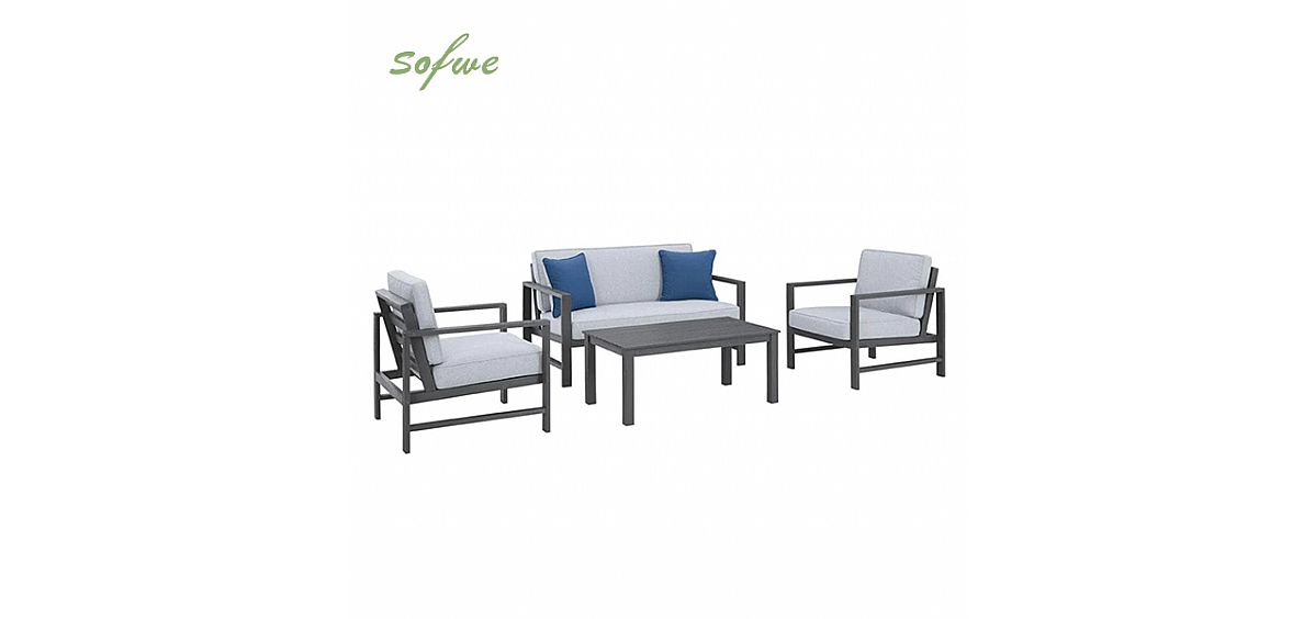Alta calidad: Está hecho de 100 % poliéster interior, densidad de la almohadilla del núcleo de espuma y material de relleno de la almohadilla envolvente de poliéster, lo que le brinda una experiencia de asiento cómoda. Su mesa de café tiene un diseño exquisito, simple y generoso, hecha de material de aleación de aluminio de alta calidad, con tratamiento de superficie anodizado, fuerte resistencia a la corrosión, durabilidad e impermeable y resistente a la humedad, lo que le permite disfrutar más al aire libre.