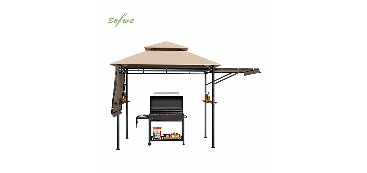 Diseño portátil: le permite tener un cómodo pabellón de barbacoa al aire libre y disfrutar de más diversión al aire libre. Tiene un diseño con estantes de ventilación de metal incorporados en ambos lados, lo que facilita la colocación de alimentos y vajillas, y un poste con placa de conexión a tierra le permite conectarse fácilmente a la fuente de alimentación, lo que hace que sus actividades al aire libre sean más convenientes. Y su diseño de sombra puede proporcionar suficiente sombra, lo que le permite disfrutar de una mayor comodidad durante las actividades al aire libre.