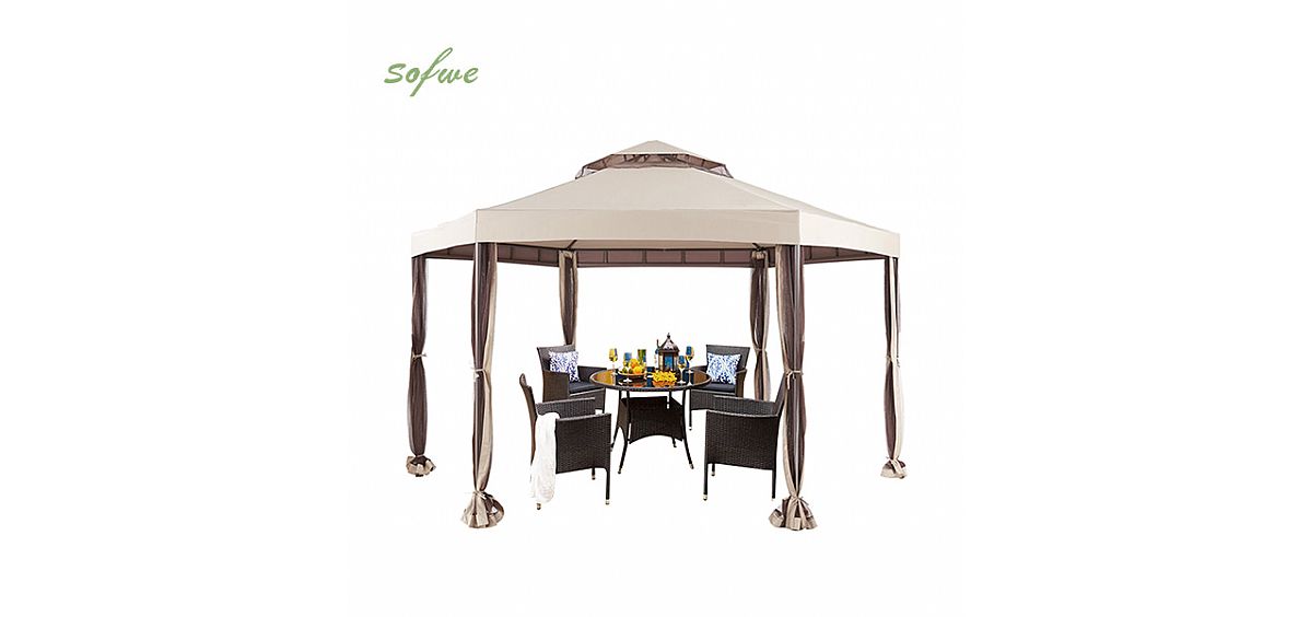 Moderno y duradero: Proporciona un cómodo espacio de descanso al aire libre. Está hecho de material de aleación de aluminio de alta calidad con una estructura estable y buena resistencia a la intemperie. Puede bloquear eficazmente los rayos ultravioleta y prevenir lesiones al relajarse y descansar al aire libre. Su diseño de techo rígido puede bloquear eficazmente el agua de lluvia, permitiéndole disfrutar del ocio al aire libre incluso en días lluviosos.